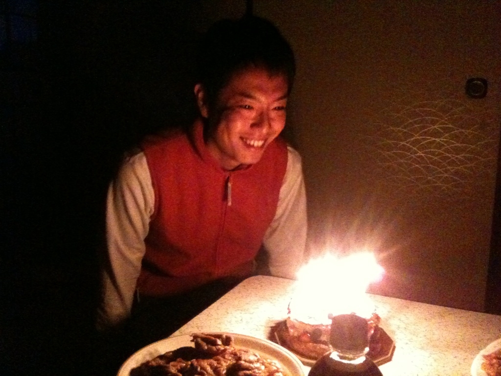パーティーといっても皷クンを含めて4人だったのでそこまで大規模なものではありませんが、現寮長の「日野さん」と自分「桑原」、そして、前寮長の「佐々木さん」でお祝いしました♪